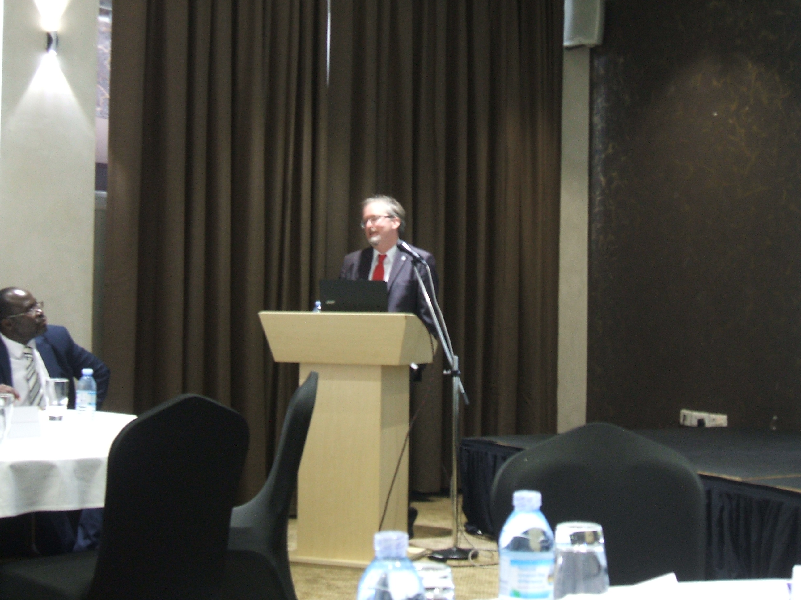 The focus of the session was on spatial data and the prosperous city, and was part of a larger programme of development being funded by the UK Department for International Development. The meeting was opened by the Minister for Lands, Housing and Urban Development from the Ugandan national government, with the audience formed of professionals from the National Planning Authority, UN-Habitat and the city council of Kampala as well as academic colleagues from the University of Makerere.